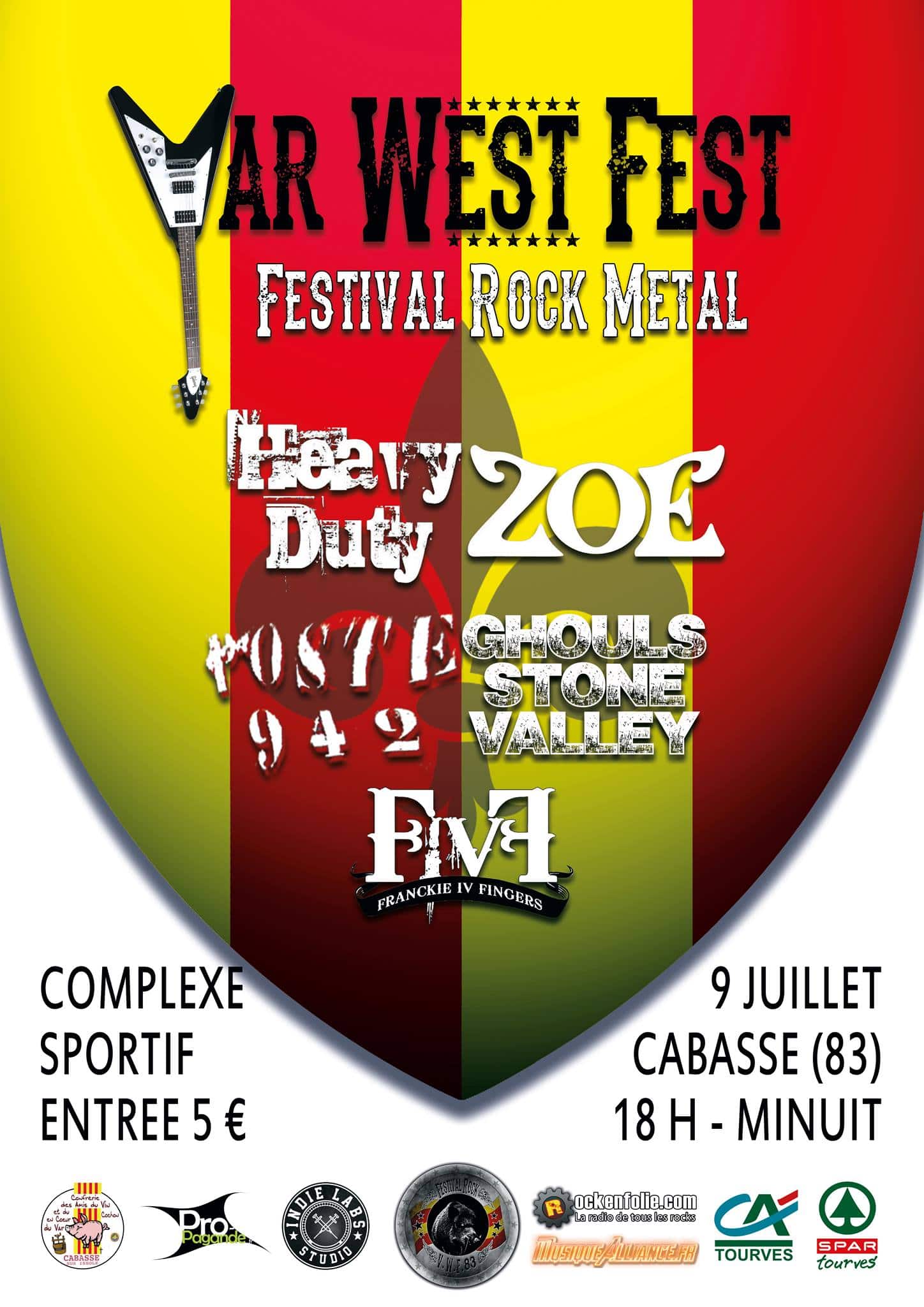 MusiqueAlliance sera partenaire officiel du Var West Fest qui se déroulera le 9 juillet 2016 à Cabasse (83). Apres le succès rencontré avec le Petit Var West au début du mois (voir notre live-report ici), il était tout à fait normal que l’événement prenne de l’ampleur et une fois de plus, c’est Seb, leader de Poste 942 qui s’occupe de nous proposer cet événement! Un grand bravo à lui et aux groupes qui ont d’ores et déjà répondu présent, à savoir : Heavy Duty, Ghouls Stone Valley, Zoe, Franckie IV Fingers et bien entendu Poste942 !!! Un événement qu’on a bien sûr hâte de vivre et de vous faire vivre!! Nous vous tiendrons informés tout au long de l’année de l’évolution de la programmation….. Stay connected 🙂