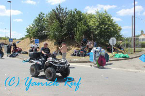 Dimanche 22 juin 2014 : Le réveil est de plus en plus dur avec le peu de nuit que l’on a pendant ce HELLFEST 2014 ! mais bon, si on veut avoir une chance de se garer pas trop loin, on doit impérativement se lever tôt, sinon le peu de places restantes sera pris et ce sera alors encore bien plus long pour rentrer après les concerts… Incroyable de voir une telle quantité de véhicules ! Ils sont garés partout, dans toutes les rues de la ville, sur une partie du parking du centre Leclerc, de McDo,… personne n’y échappe !