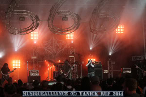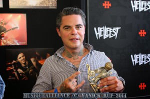 Apres cela, je me rends vers le Mainstage 1 pour écouter Blues Pills, un groupe suédois de blues/rock mené par une chanteuse à la voix en or. Un autre nom à bien retenir !! Retour à l’espace presse ou je retrouve Ema pour préparer l’interview à venir, celle d’Azziard. Les musicos sont aussi sympa que leur musique et c’est un réel régal de les écouter… L’interview est disponible ici même !! Apres cela, nous avons enregistré une amission avec Ema et Sonia en compagnie des marionnettes Markus & Spenser visible ici. Un grand moment de bonheur que de tourner cela ! Une autre vision du festival en vidéo cette fois-ci, c’est plutôt cool (si vous aimez, faites nous le savoir et on en refera d’autre de ce genre !). Vient ensuite un moment de pseudo repos, je me cale tranquillement dans l’espace presse afin d’écouter le prochain album du groupe In Flames que les organisateurs ont eu la gentillesse de nous proposer à l’écoute en avant-première !! Avant de continuer sur la conférence de presse de Ben Barbaud, le créateur du Hellfest qui s’est prêté au jeu du question réponse et nous a appris, entre autre, que cette année, on a atteint le nombre incroyable de 153.000 spectateurs pour le festival !