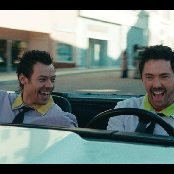 Le clip, produit par Object & Animal, détourne le texte en une performance méta: Harry Styles y incarne une star coincée sur un plateau de tournage, entourée de cascadeurs. Décors de film d’action, rampes de moto et explosions ponctuent la vidéo, mais ce ne sont jamais les traits de l’artiste que l’on voit frôler le danger. Lui reste en retrait, regard amusé ou songeur, assistant à sa propre vie par procuration. Le directeur de la photographie Chris Ripley utilise des focales longues pour isoler Harry au milieu de l’agitation technique, accentuant son isolement au cœur du spectacle.