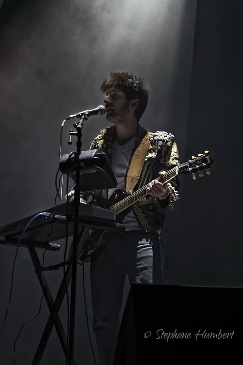 C’est le groupe Super Social Jeez composé de Sacha Taillet, Benjamin Lafont et Celio Tardio qui s’est occupé de la première partie après 20 heures. Ils ont été surpris de voir une salle aussi remplie. Bien que ce groupe français chante en anglais, ils ont 2 chansons dans leur langue maternelle. D’ailleurs avec le titre FORCE, le chanteur Sacha Taillet a déclaré que cela leur permettait d’aligner leur chakra. Leurs différentes chansons étaient très entraînantes.